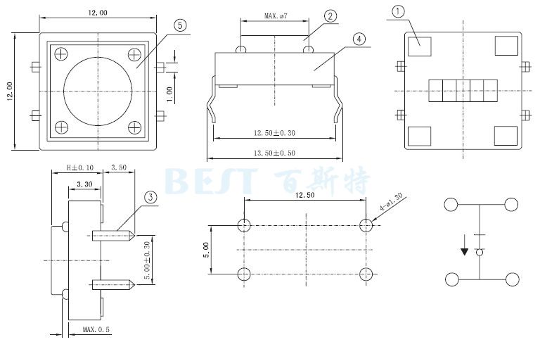 轻触开关12×12_TS-1103_参考图纸: