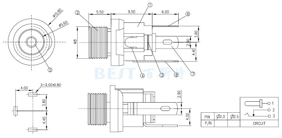 dc电源插座dc-025M额定值是dc30V 0.5A,插入力度是3到20N,是插件dc电源插座。针芯直径2.0/2.5mm,dc电源插座的孔径尺寸是5.6mm,两个插脚。有带螺纹和不带螺纹两种。dc-025M主要应用于电视机、组合音响、音箱、收录机、计算机等家用电器电子仪器设备。例如高清电视、电脑、DVC解码板、电子称、电饭煲、多媒体通讯、空调等。